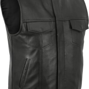 Leatherick SOA Chaleco de motorista de cuero genuino sin cu...