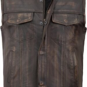 RAXUS Chaleco Hombre Cuero Motero Chaleco de moto de cuero ...