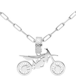 CODEONE Colgante motocross plateado, Collar moto acero inox...