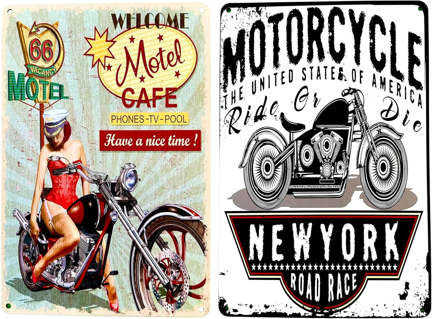 / 2x Póster de DiiliHiiri Placa Decorativa Moto Custom Easy Rider —30x20cm— Letrero para Regalar a Moteros Vintage Cartel Retro Motero | Chapa Decoración Motos (2635-218-256)