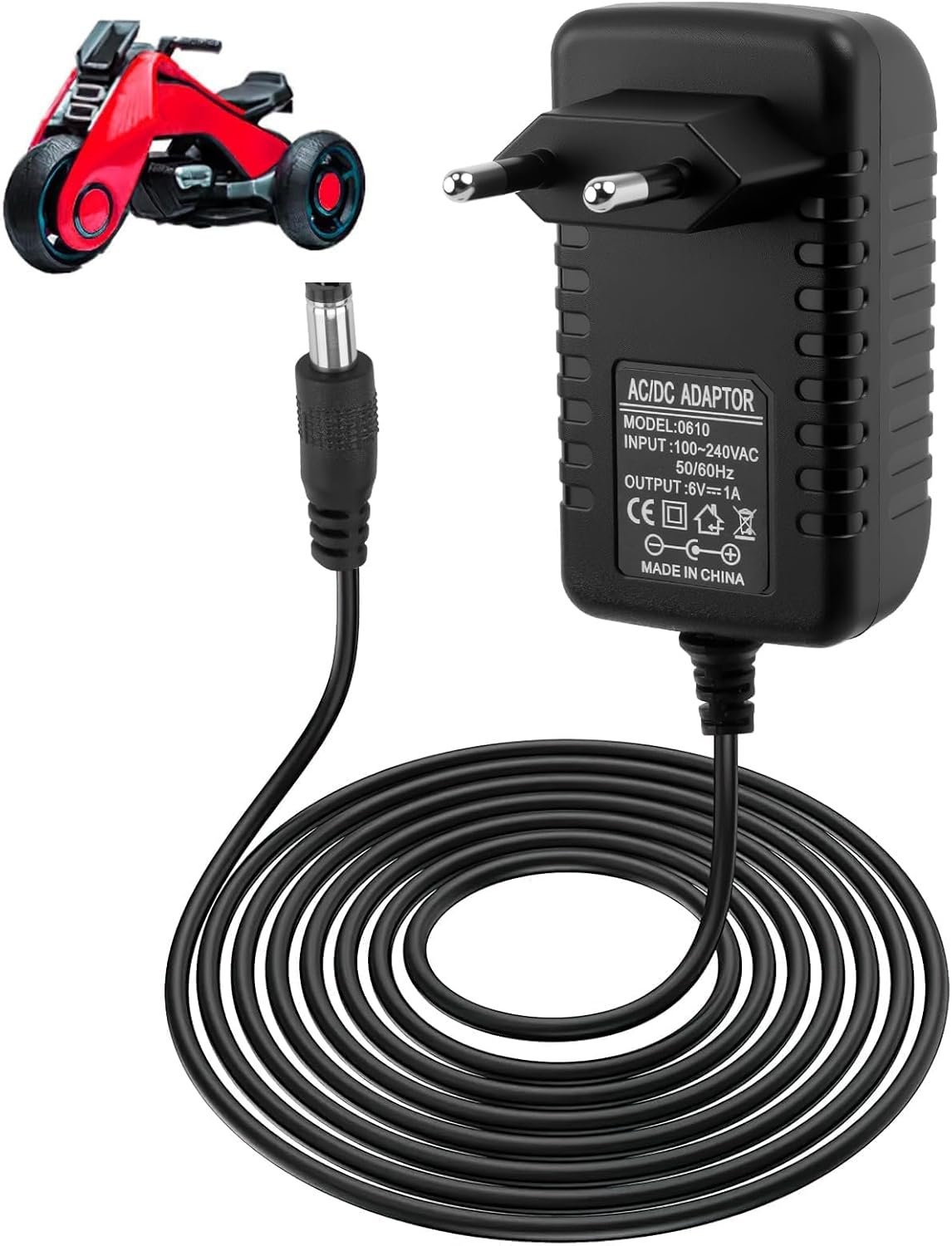 6V 1A Cargador de Vehículo Eléctrico para Niños, Cargador para Niños con Coche, Moto SUV ATV Quad Conducción Eléctrica en Juguetes Coches Eléctricos Infantiles Motocicleta, Conector 5,5 mm * 2,5 mm