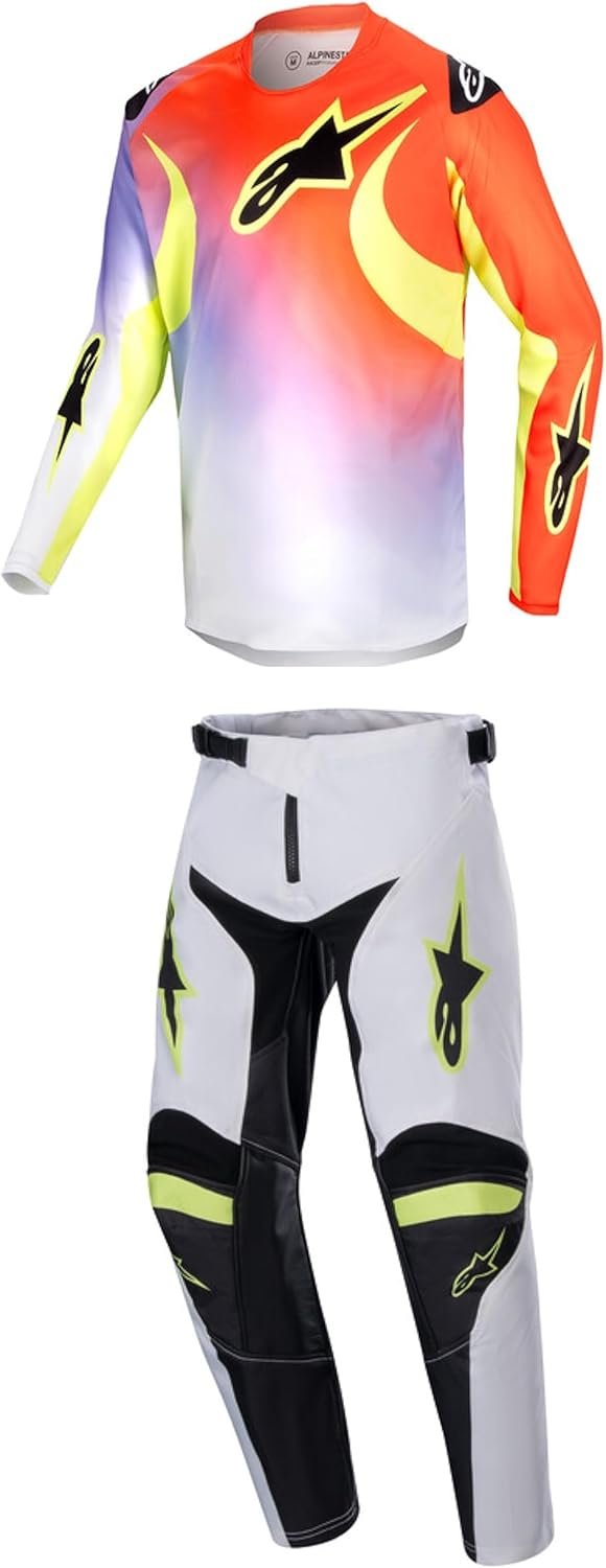 / Alpinestars Racer Lucent – Conjunto de equipo de moto juvenil color blanco/rojo neón/amarillo fluo, combo de pantalón y camiseta
