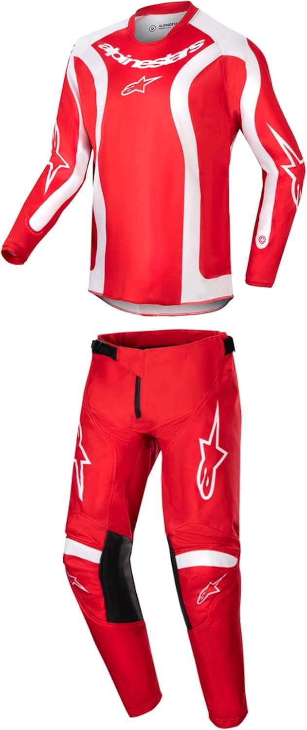 / Alpinestars Racer Lucent – Conjunto de equipo de moto juvenil color blanco/rojo neón/amarillo fluo, combo de pantalón y camiseta