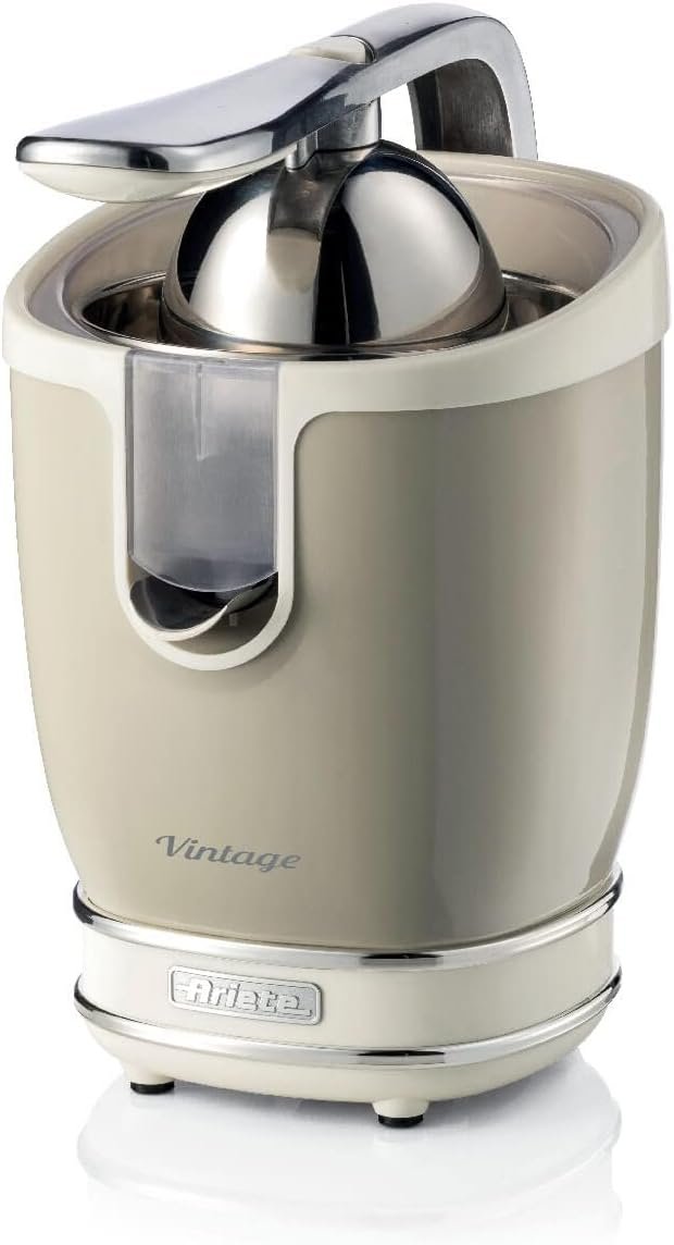Ariete 413-03 - Exprimidores eléctricos Vintage 85 W, silencioso, 2 conos diferente tamaño, recogecable, boquilla acero inoxidable, función antigoteo, cuerpo metal beige