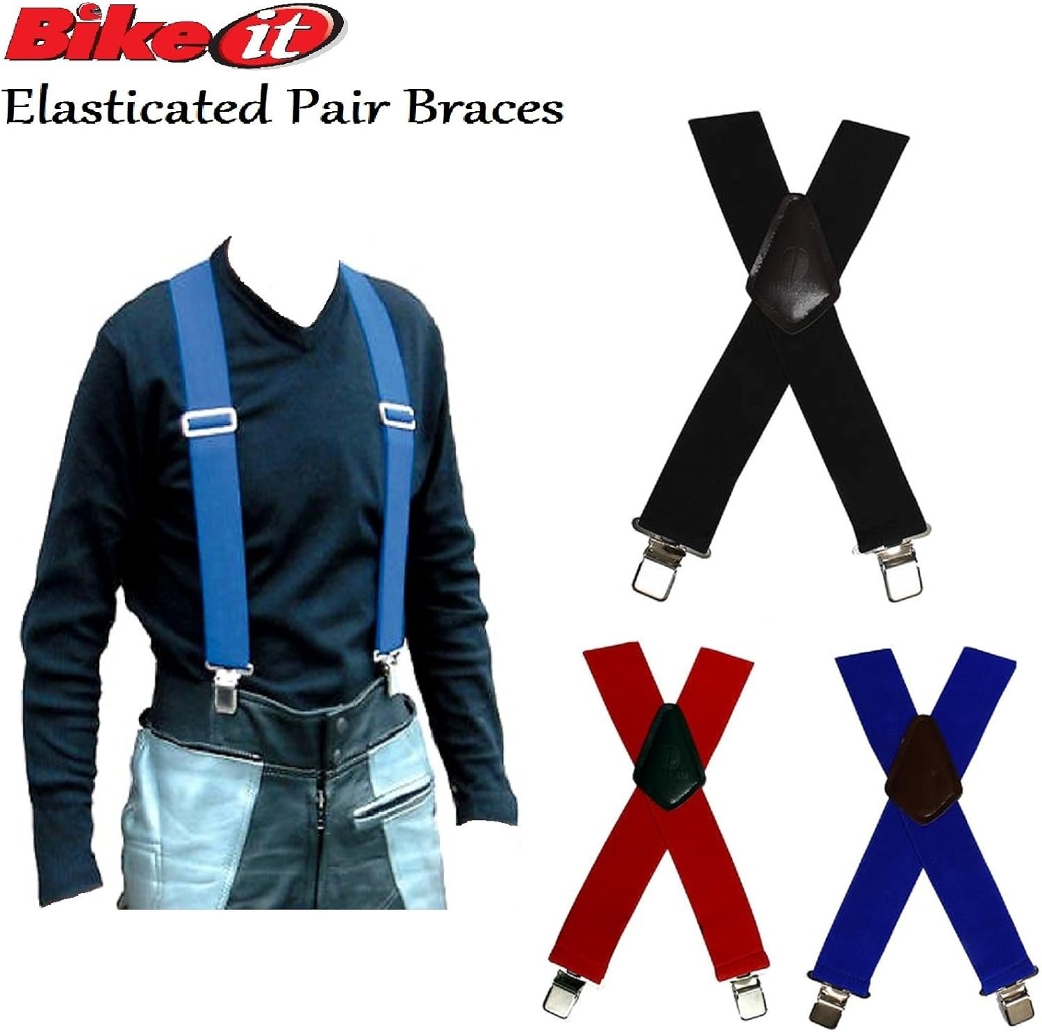 BIKEIT HEAVY DUTY ELASTICATED PAIR BRACES Motorbike Biker Rider Braces For Mens Pant Trouser