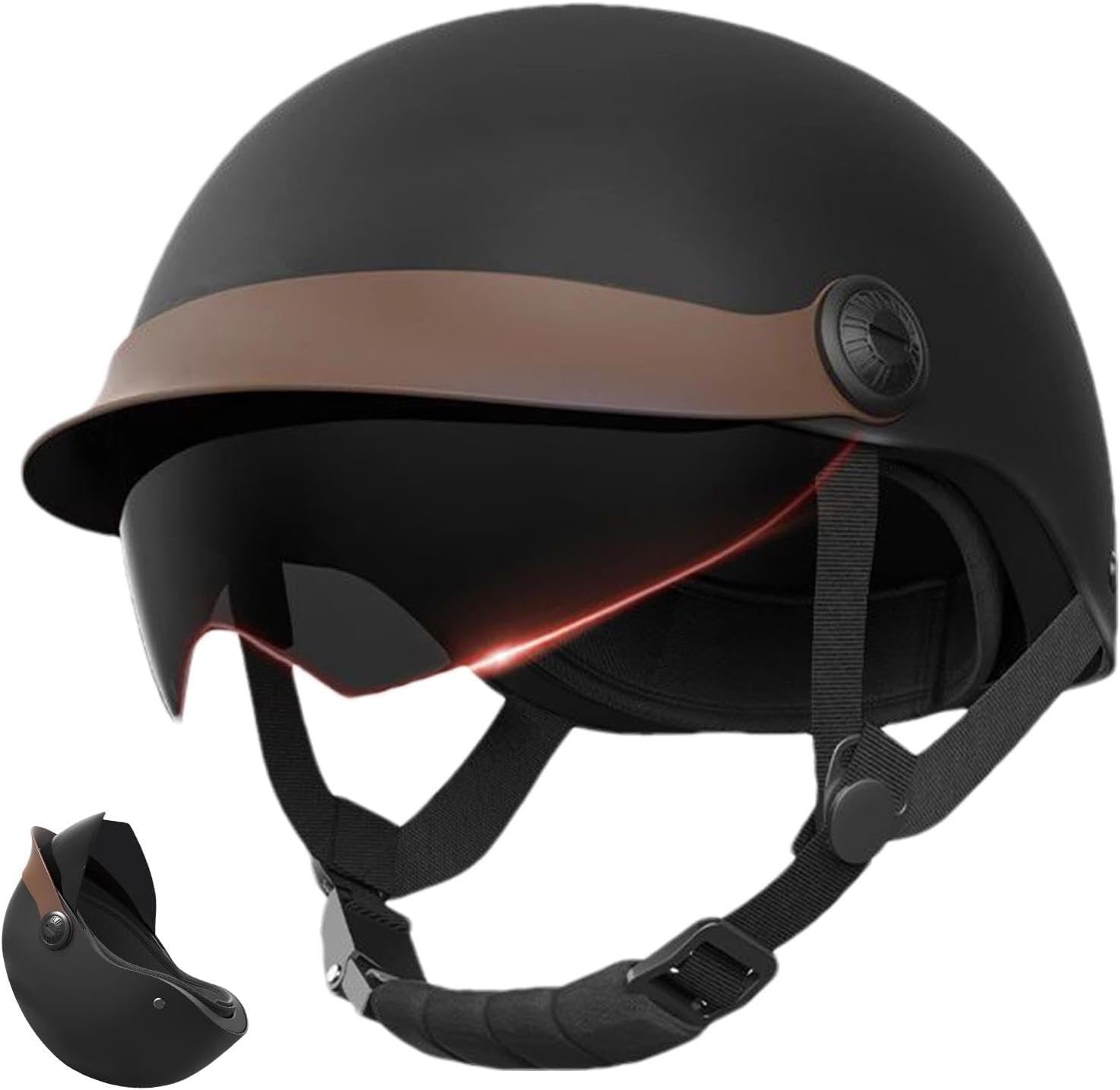 / Casco con visera, ideal para scooter, scooter, ciclomotor, moto, casco de moda, cómodo para hombre y mujer, Negro