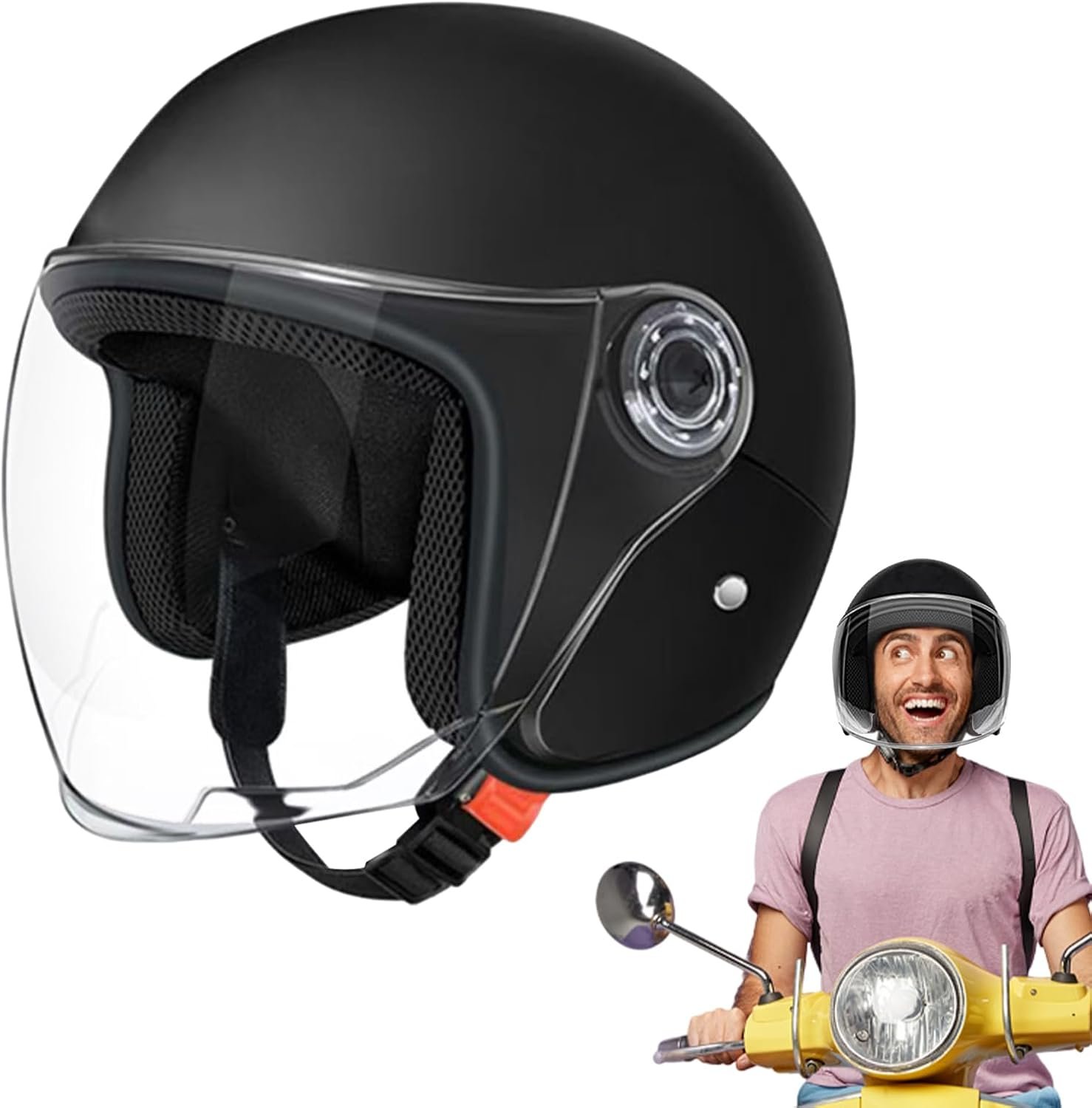 Casco De Moto para Adultos – Medio Cascos Motos Hombre – Vintage Cascos De Motocicleta – Cascoes Motos Abierto Retro con Visera Solar – Scooter Cascoes, Ciclomotor para Hombres Mujeres
