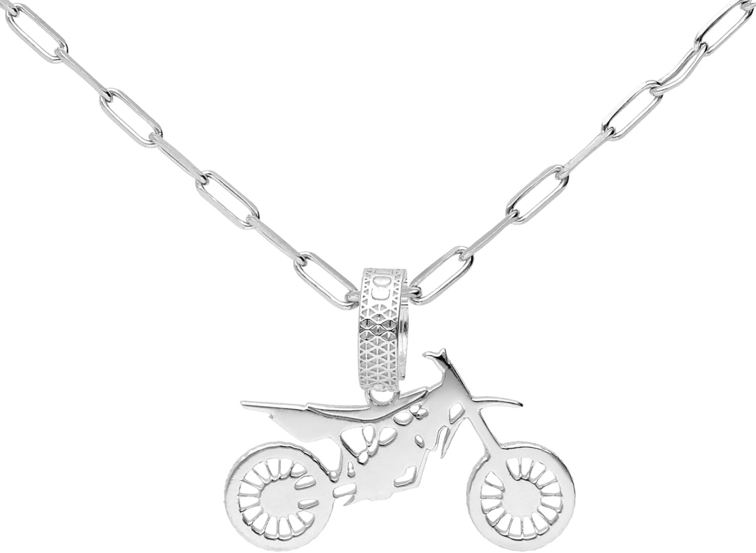 CODEONE Colgante motocross plateado, Collar moto acero inoxidable, Collar de motocross, Hombre, Mujer, Estuche de regalo