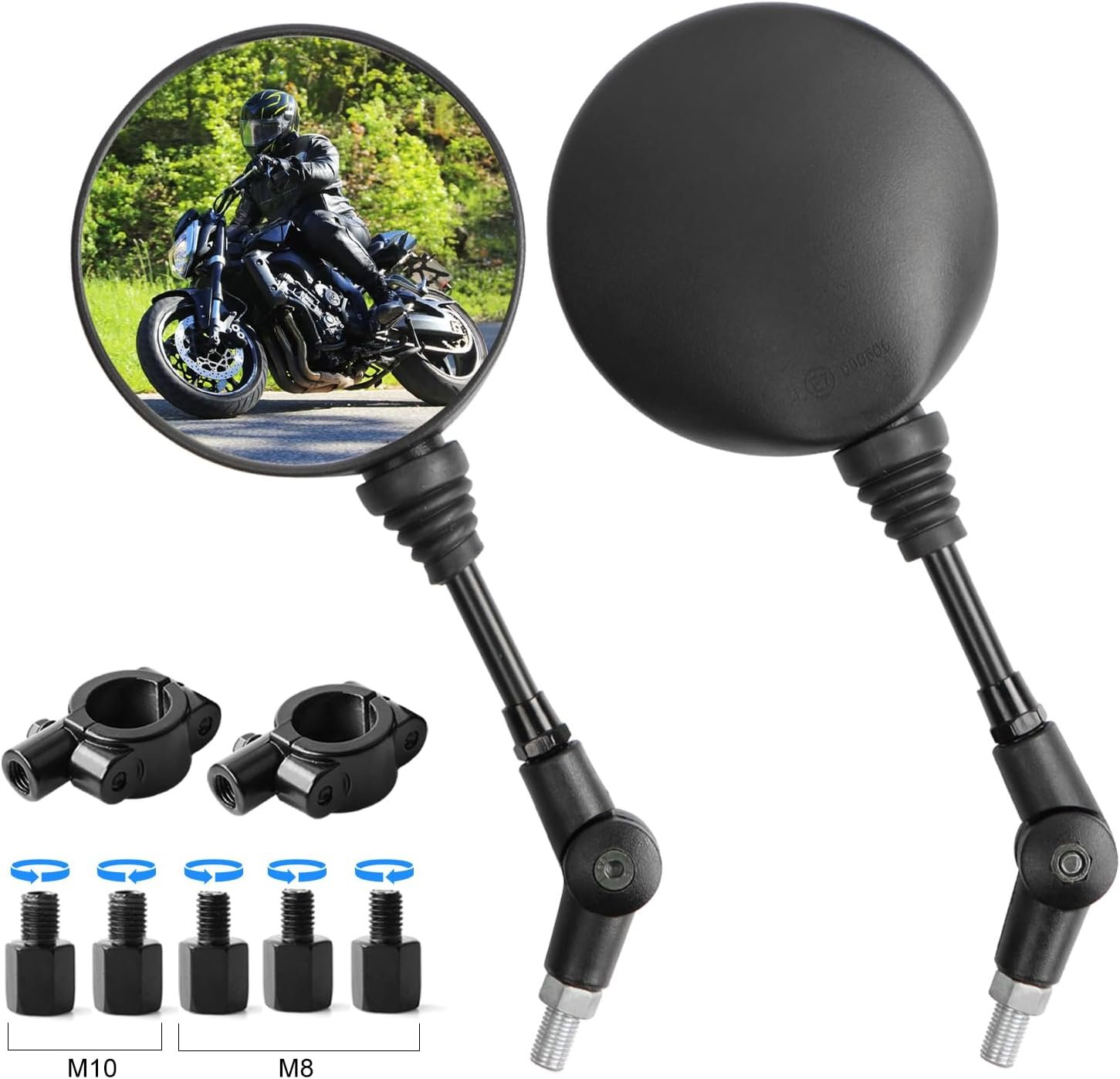 / Espejos Retrovisores Moto Homologados, 1 Par universal Moto lateral espejo retrovisor,7/8"22 mm Espejos Retrovisores del Manillar con Tornillos de Fijación 10mm y 8mm para Motos, Scooters