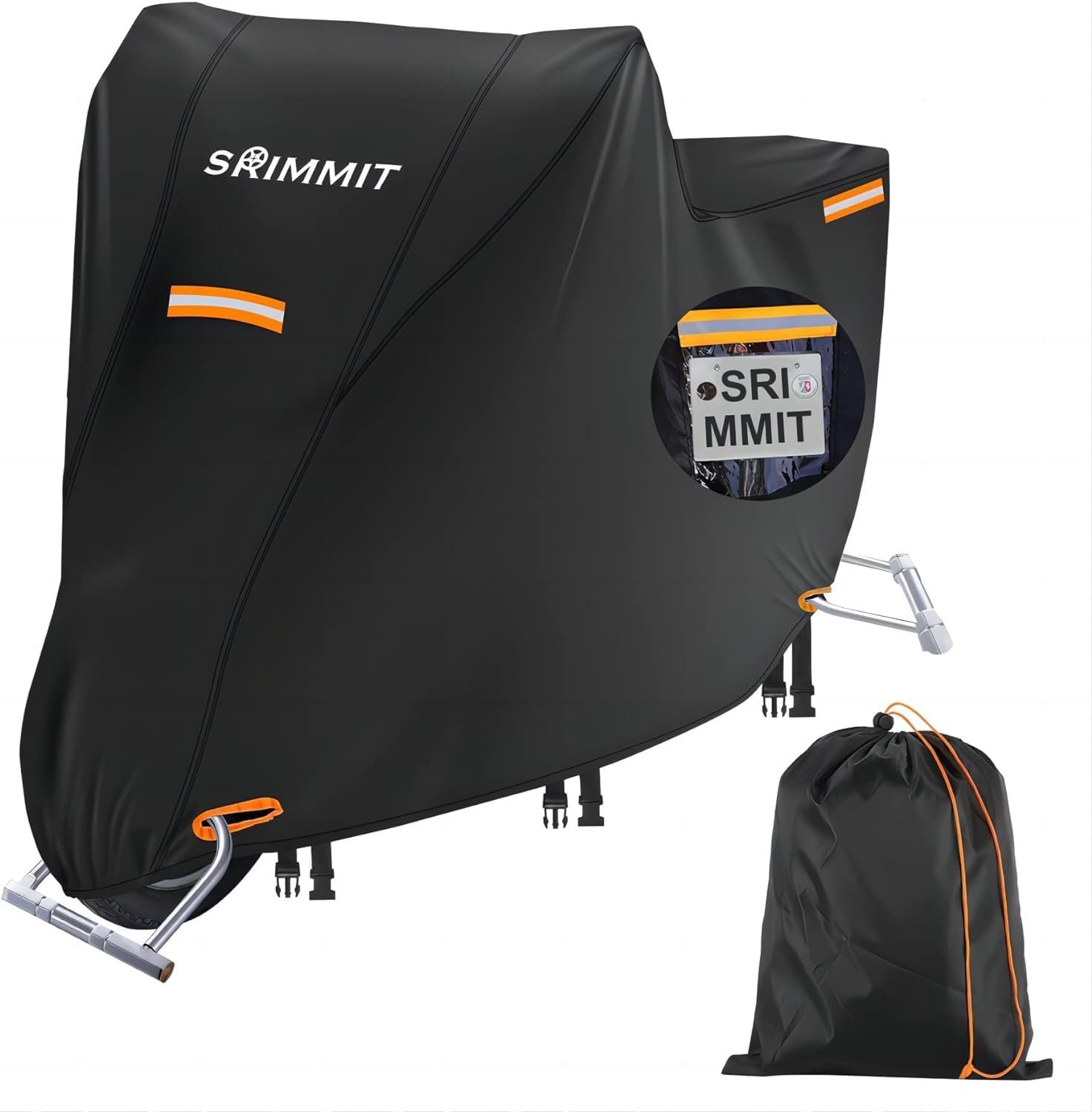 Funda para Moto, Cubierta de Motocicleta Premium 420D, Robusta y Duradera, Visible Matrícula, 4 Bandas Reflectantes Brillantes, Agujero de Bloqueo Seguro – XXXXL:270x95x140 cm