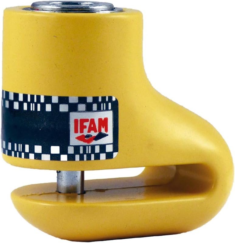 / IFAM Antirrobo Freno Disco Moto DF1, 5.5mm Diámetro, Cerradura Automática, 2 Llaves Tubulares, Color Amarillo, Compacto y Seguro, Acero Endurecido, Ideal Motocicletas de Pequeña o Mediana Cilindrada