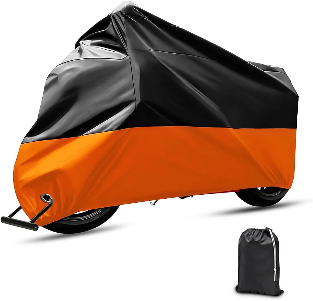 JNNJ Cubre Moto Impermeable, Cubierta Impermeable Universal De La Lona De Motocicleta, Motocicleta Anti-UV Cubierta del Polvo para Al Aire Libre, Cubierta Poliéster para Moto Scooter(Negro/Naranja)