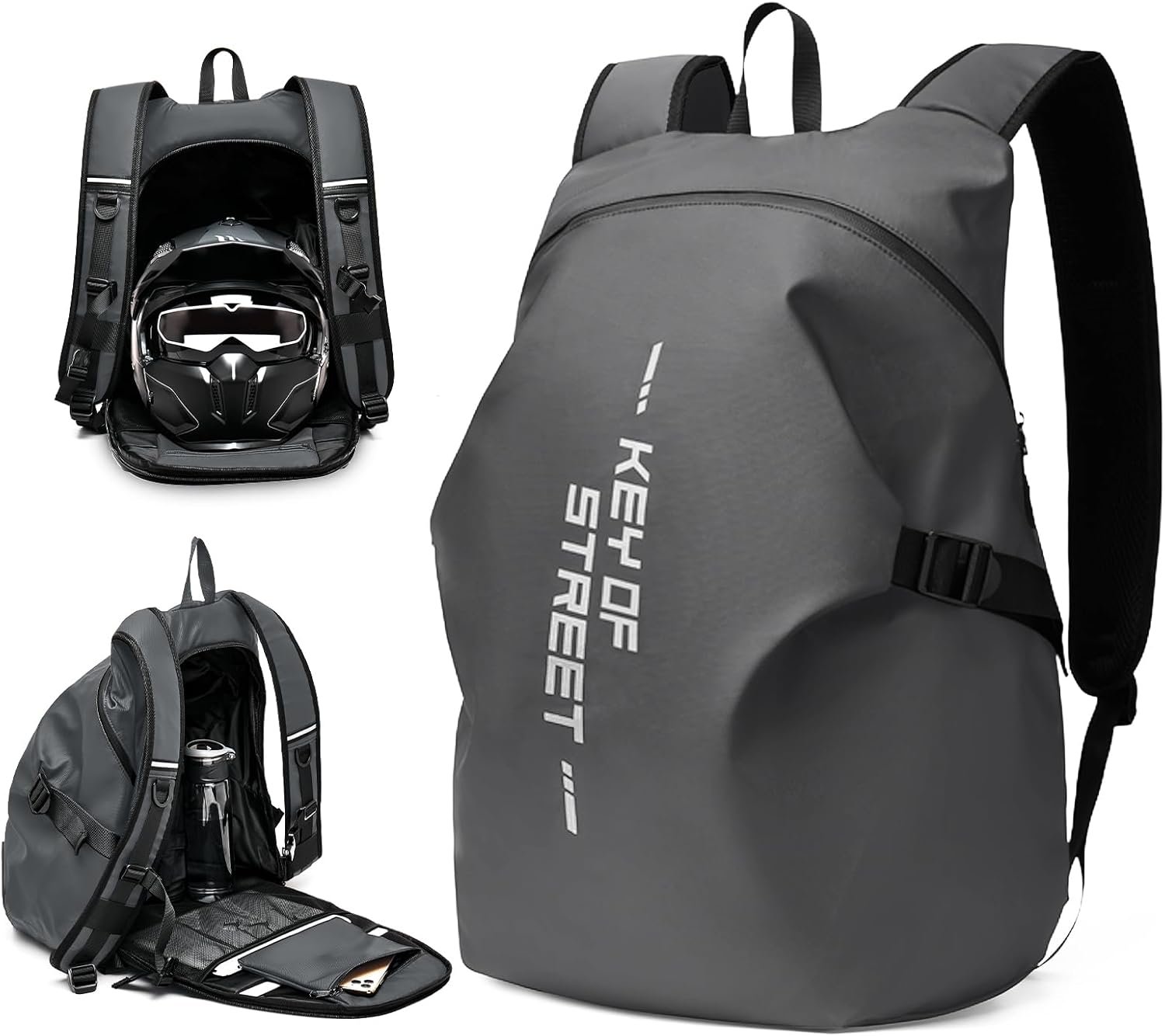 Mochilas de Motocicleta para Hombre Mochila para Casco Moto Integral Mochila Moto Impermeable Rigida Bolsa Mochila para Casco de Moto Bolsa Porta-Cascos Motorista Mochila Motocross,Gris