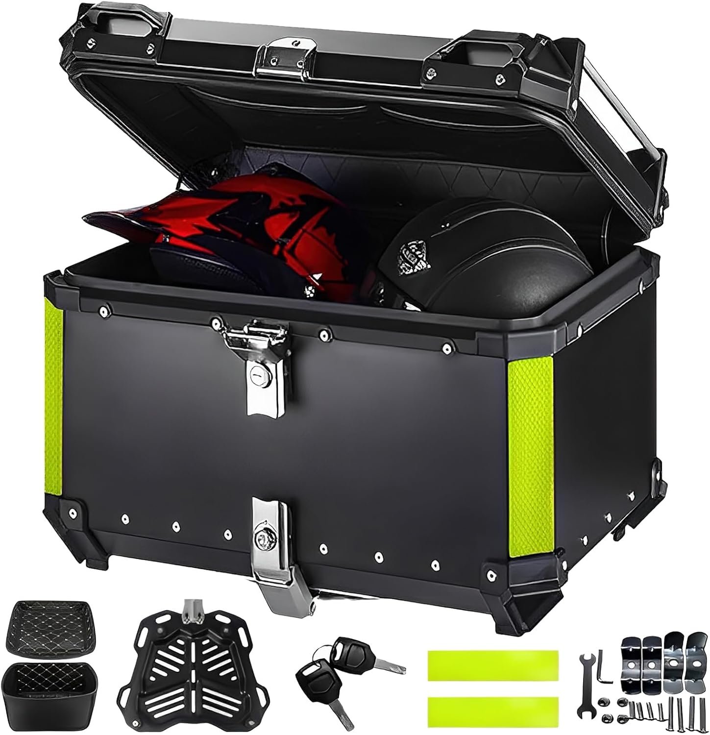 Moto Top Case,Top Case Moto de aluminio impermeable,baúl de almacenamiento con doble llave,caja de cola de motocicleta con cerradura de seguridad,caja de equipaje para almacenamiento de cascos (55L)