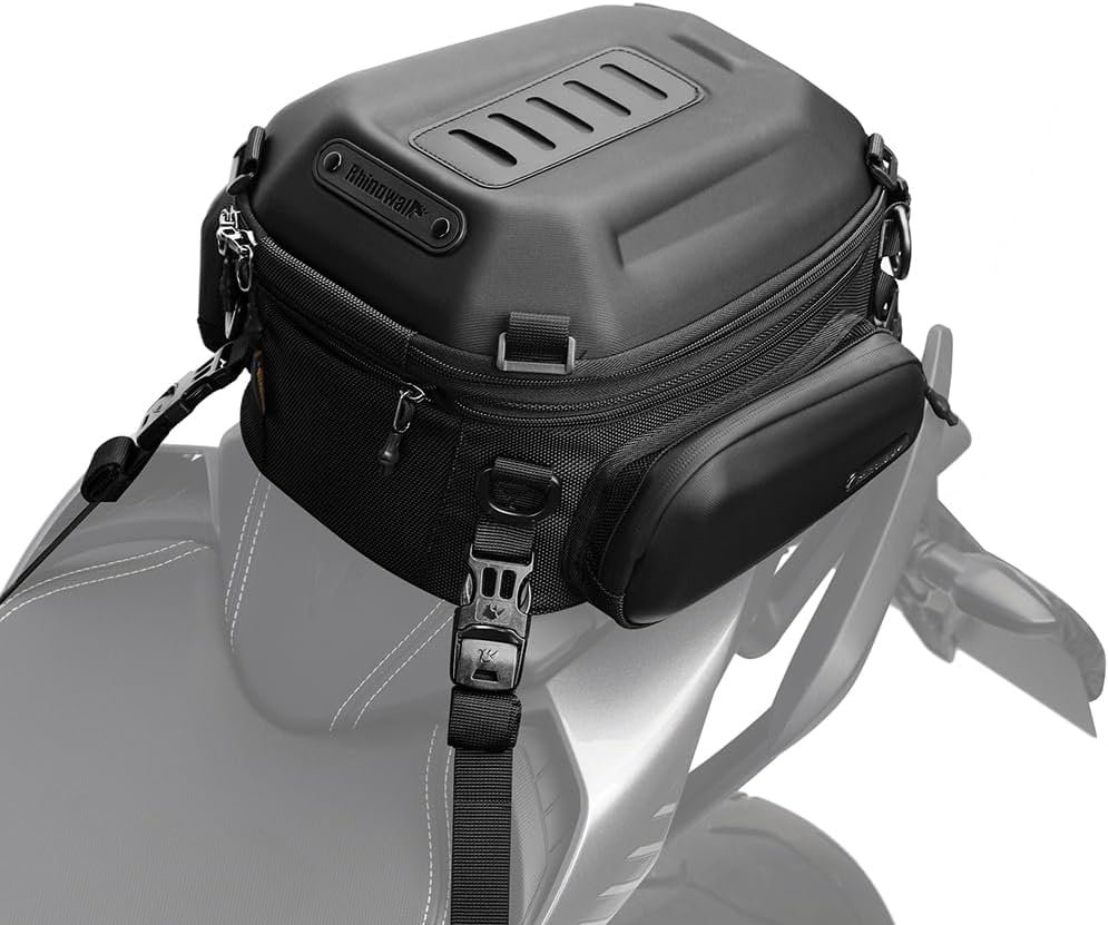 / Rhinowalk Bolsa de almacenamiento para motocicleta, carcasa rígida, impermeable, capacidad 12-18L expandible
