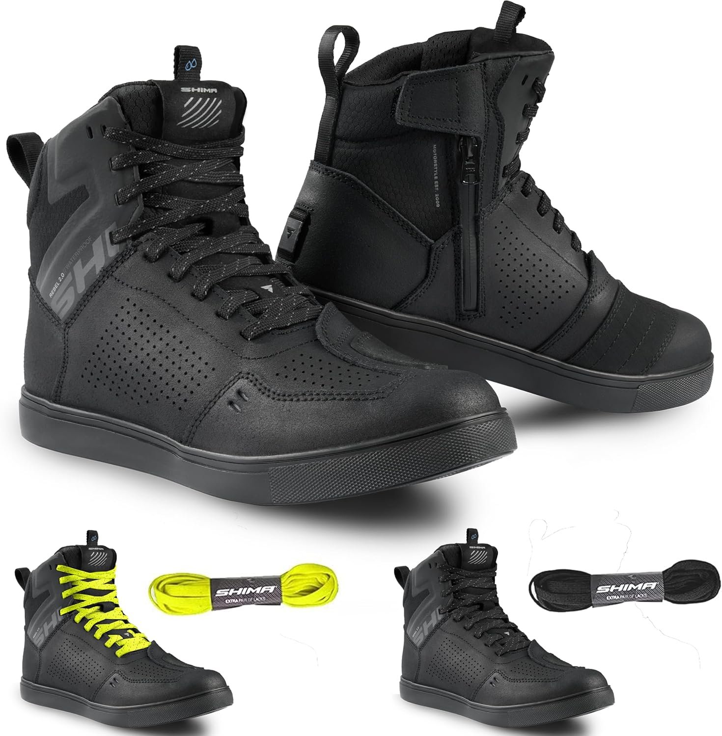SHIMA REBEL 2.0 Botas Moto Hombre Cuero Impermeable Zapatillas Verano Calzado Motorista Baja Adventure Cremallera Lateral Protección Tobillo Motocicleta Trail (Masculinos, Impermeable Negro, 41)