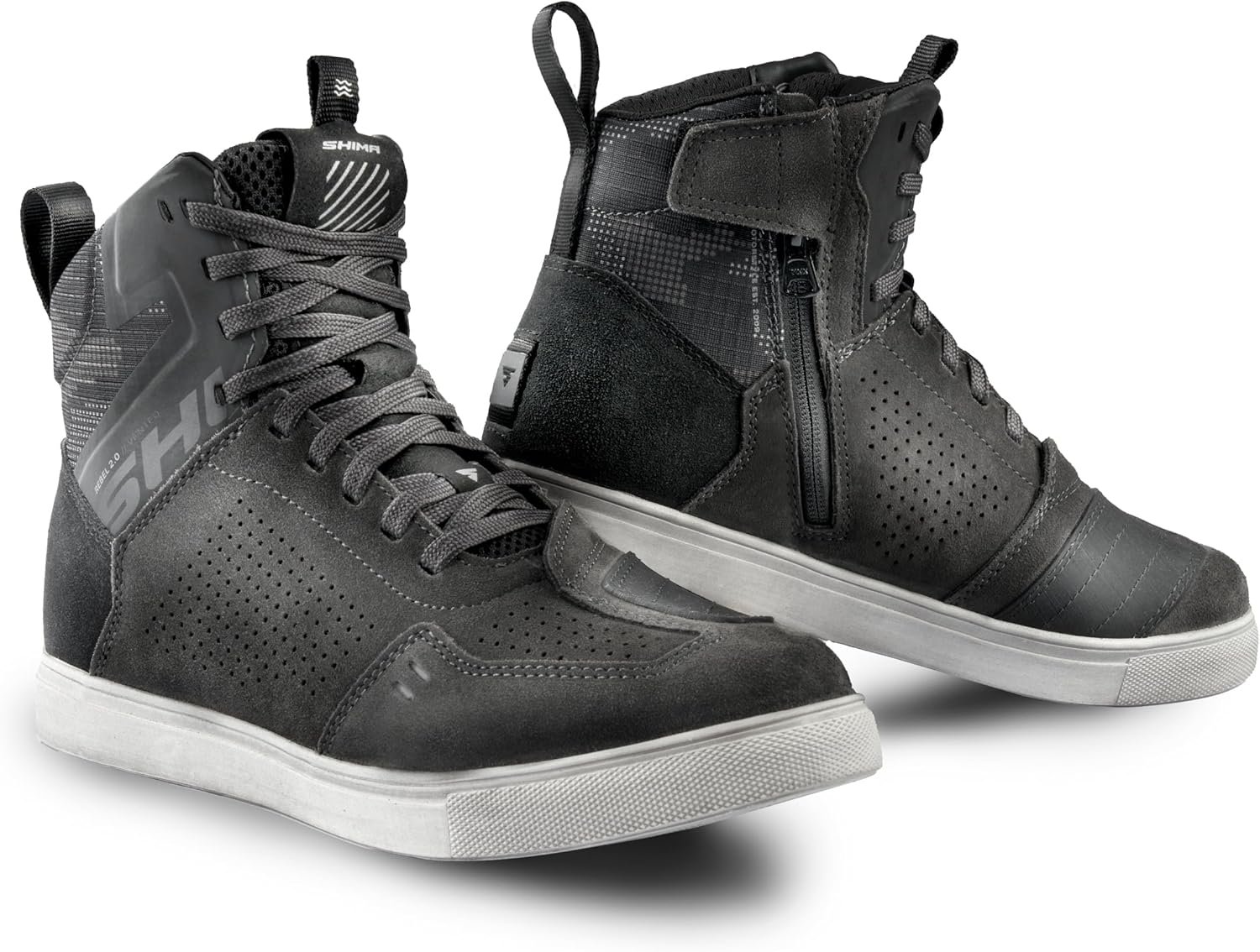 SHIMA REBEL 2.0 Botas Moto Hombre Cuero Ventilada Zapatillas Verano Calzado Motorista Baja Adventure Cremallera Lateral Protección Tobillo Motocicleta Trail (Masculinos, Ventilado Gris, 43)