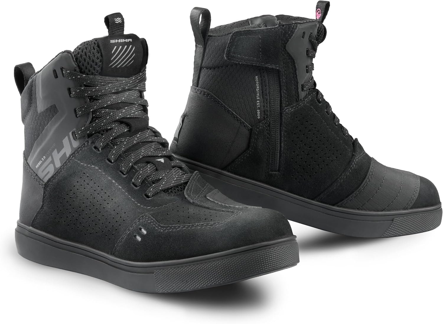 SHIMA REBEL 2.0 Botas Moto Mujer Cuero Ventilada Zapatillas Verano Calzado Motorista Baja Adventure Cremallera Lateral Protección Tobillo Motocicleta Trail (Femenino, Ventilado Negro, 36)