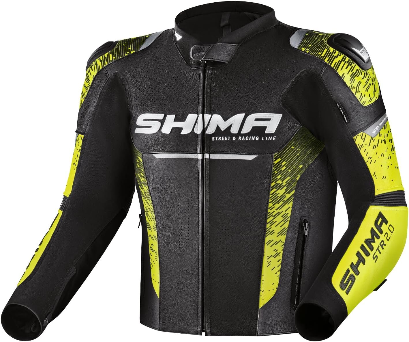 / SHIMA STR 2.0 Chaqueta de moto – Cuero, chaqueta deportiva con protectores de espalda, codos y hombros, piel perforada, para traje de 2 piezas (Negro/Fluo, 54)