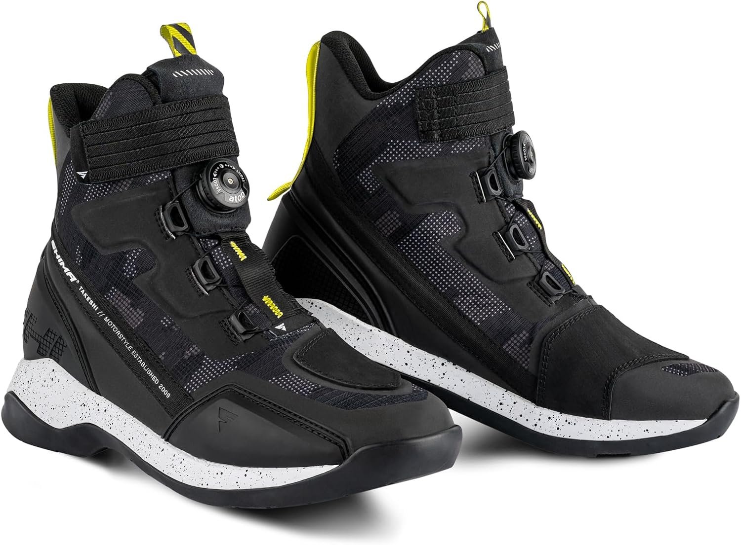 SHIMA TAKESHI VENT, Zapatos de Motocicleta para Hombres – Transpirables, Zapatos de calle reforzados con sistema de cierre ATOP, Suela antideslizante, Mango de cambio de marchas (Camo, 43)