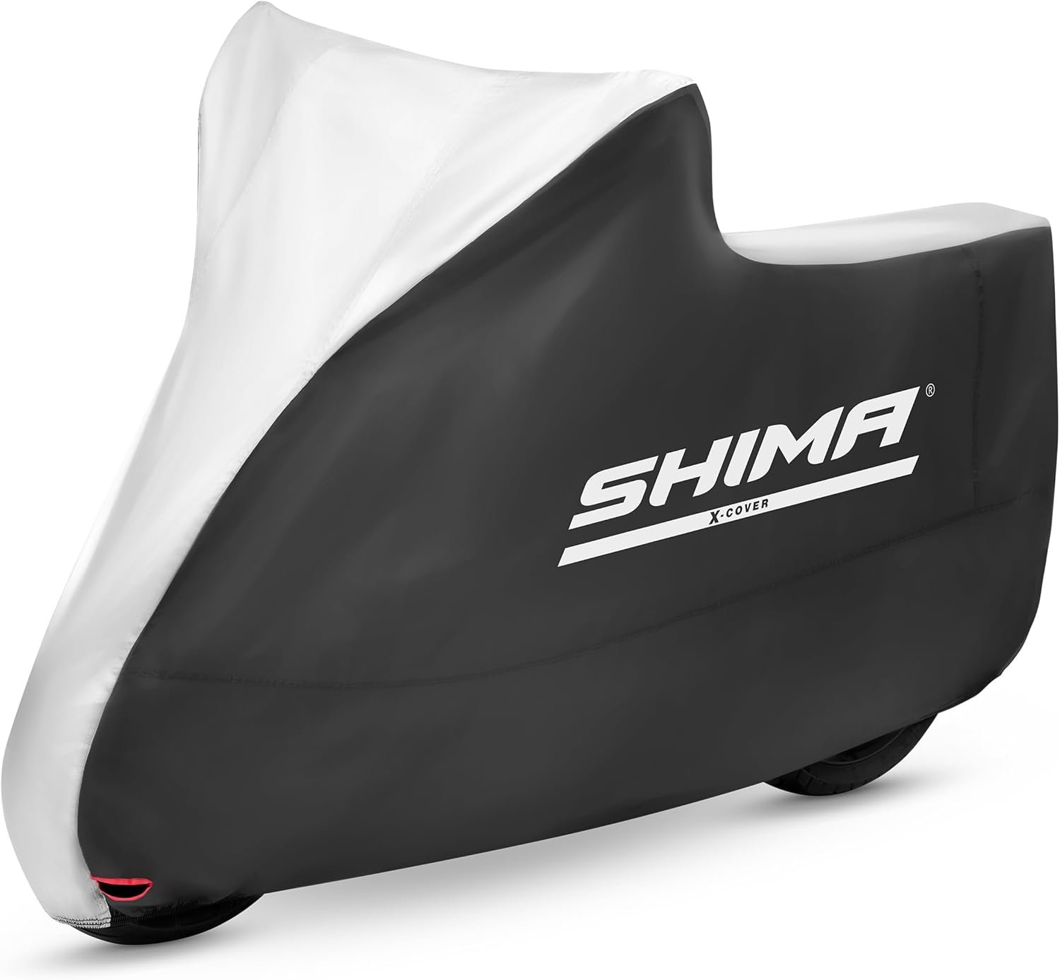 / SHIMA X-Cover Funda Moto Impermeable para Exterior Grande Fundas Motocicleta Accesorios Capa la Motos Protección UV Antipolvo Orificio para Bloqueo (Negro, L)