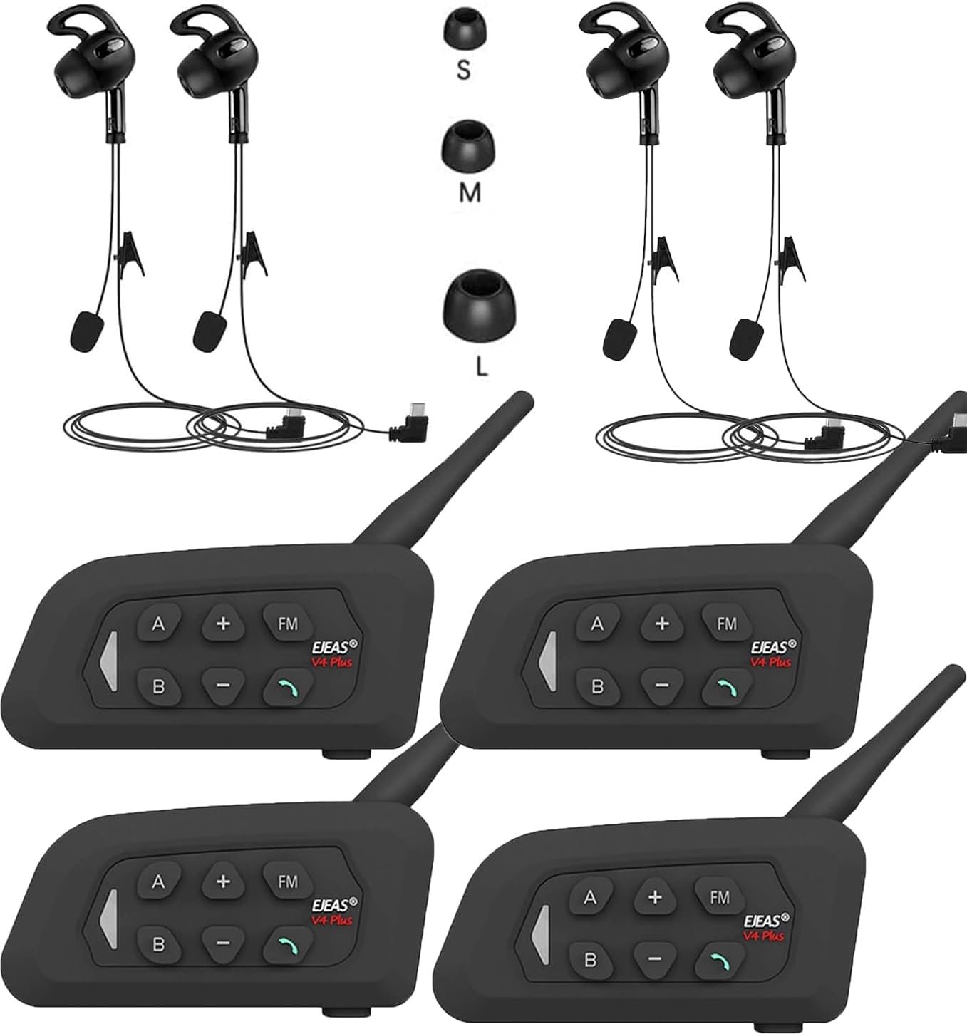 SolaMr V4C Plus Intercomunicador Profesional para �?rbitros – Bluetooth 5.1 Intercom para Oído Izquierdo, Freecom con Reducción de Ruido CVC, Radio FM e Intercomunicación 4 vías hasta 1500 m – 4 Pack