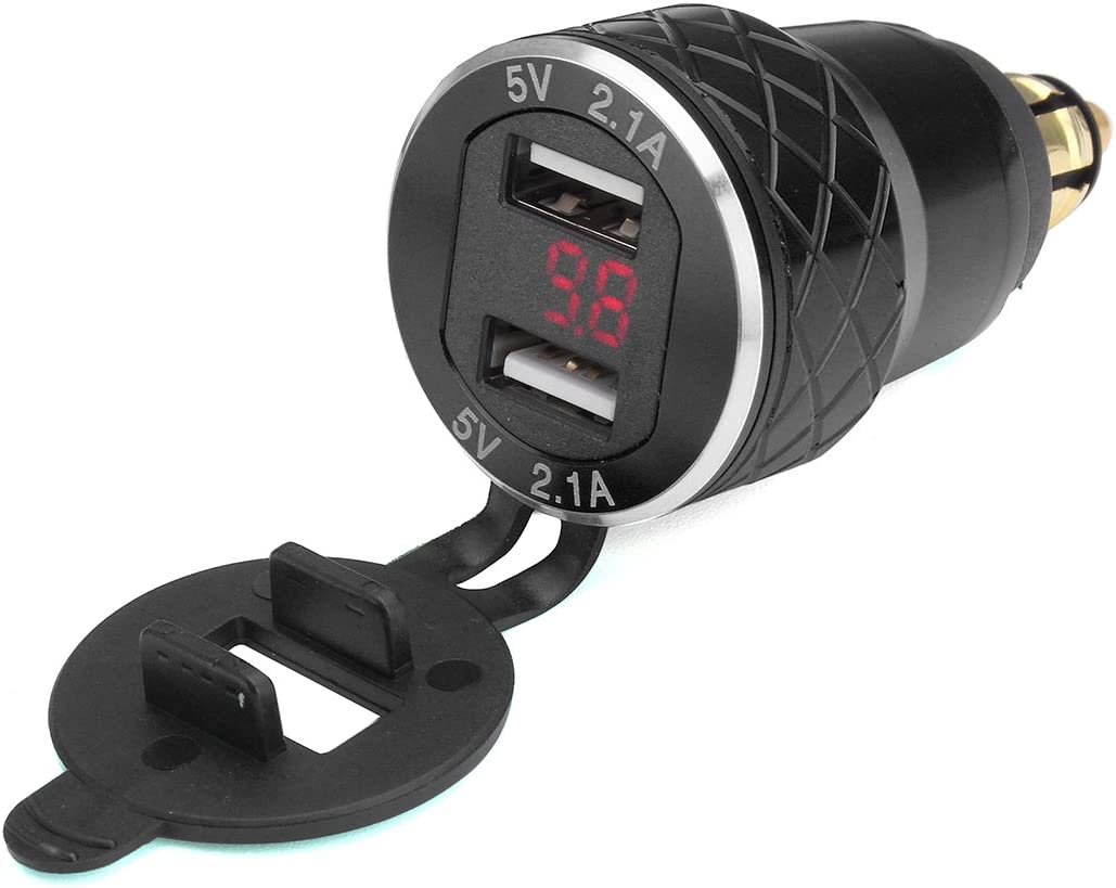 Viviance 12V-24V 4.2 A Voltímetro Rojo Motocicleta Dual USB Cargador DIN Socket para BMW Moto – Negro